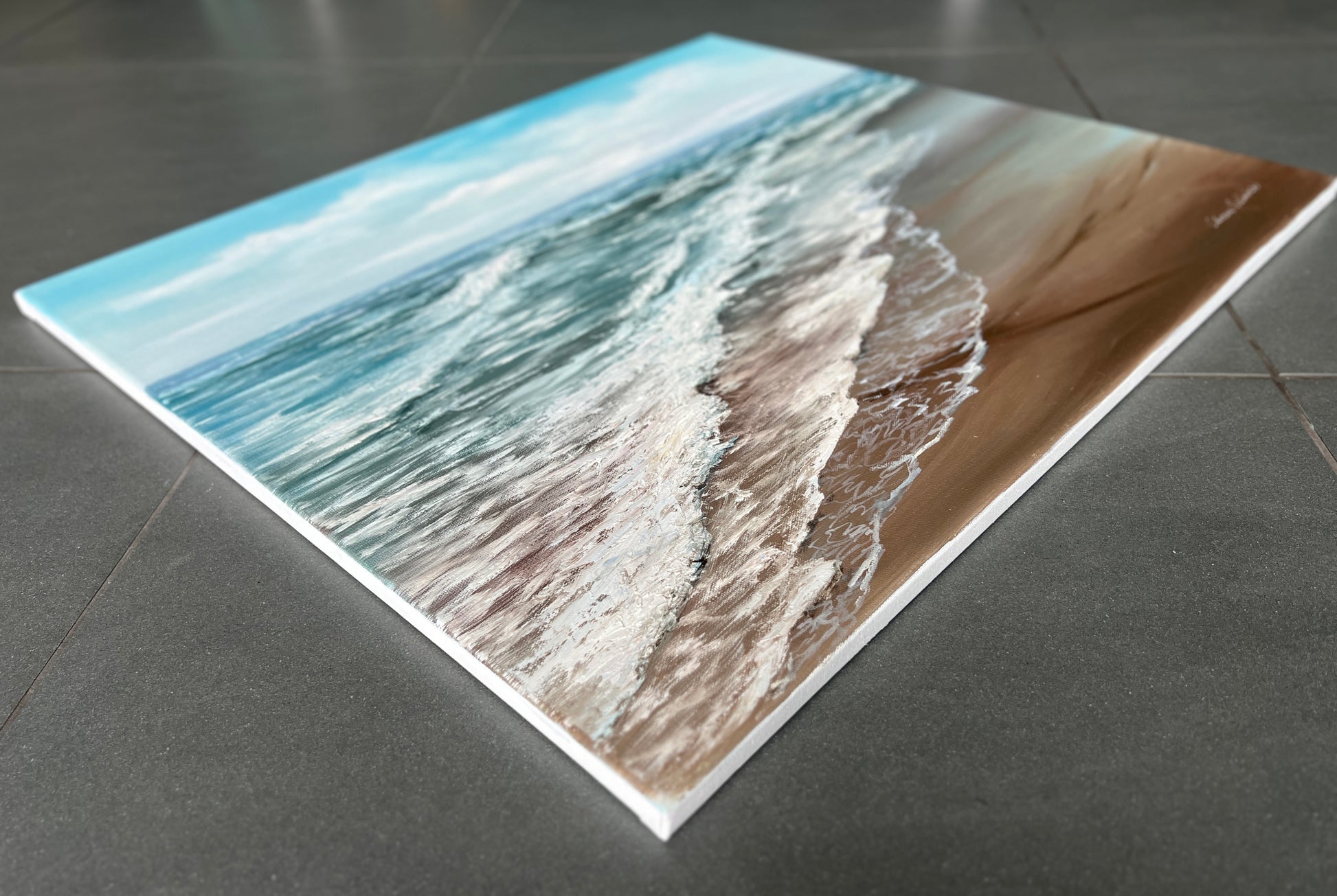 The painting is ready to hang on a wall (not rolled in a tube).