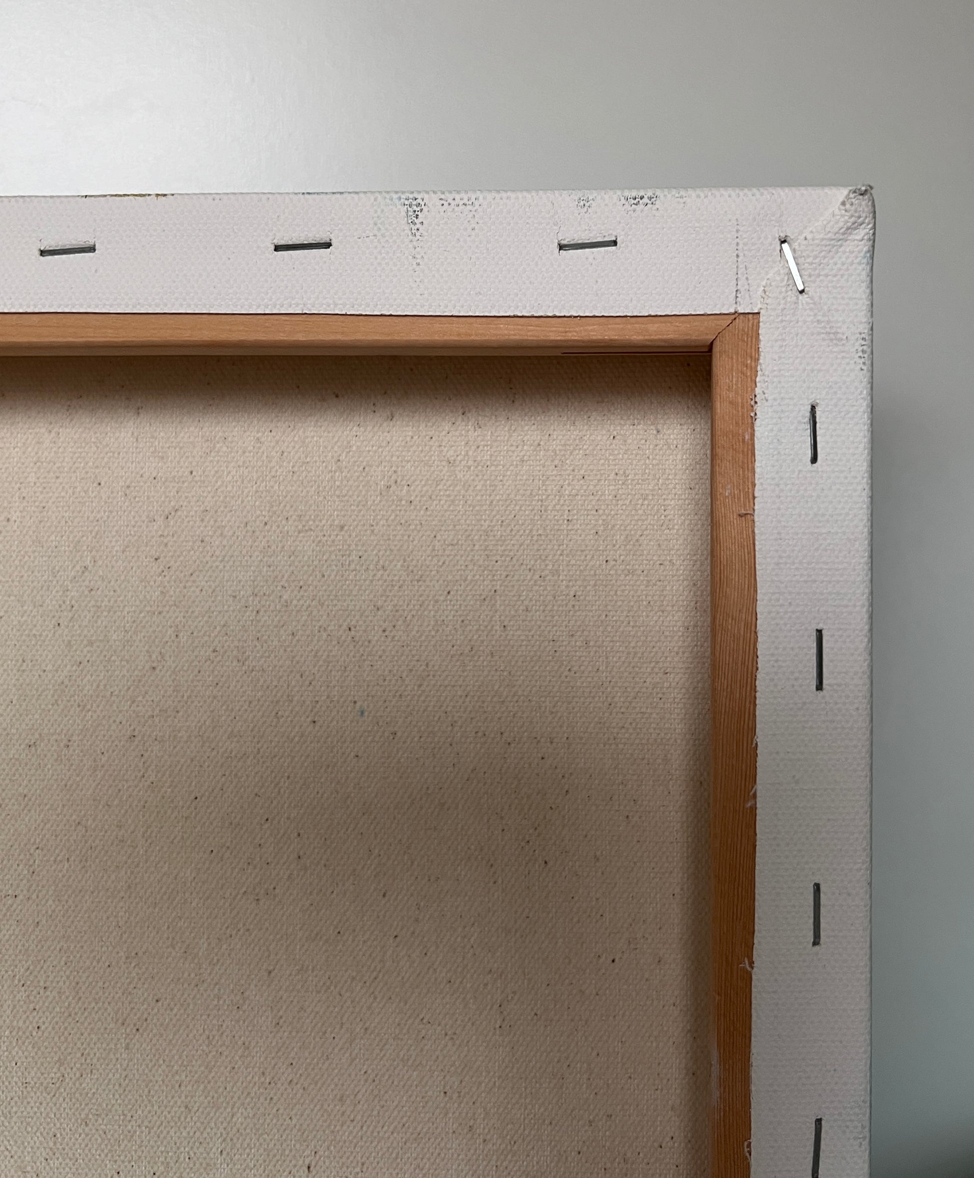 The painting is ready to hang on a wall.