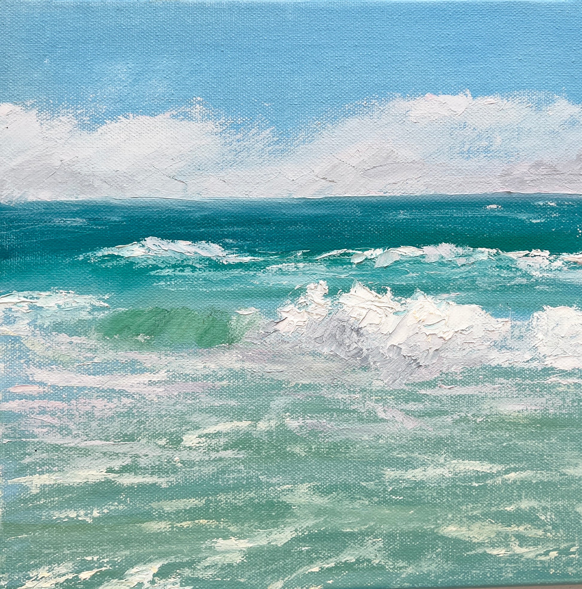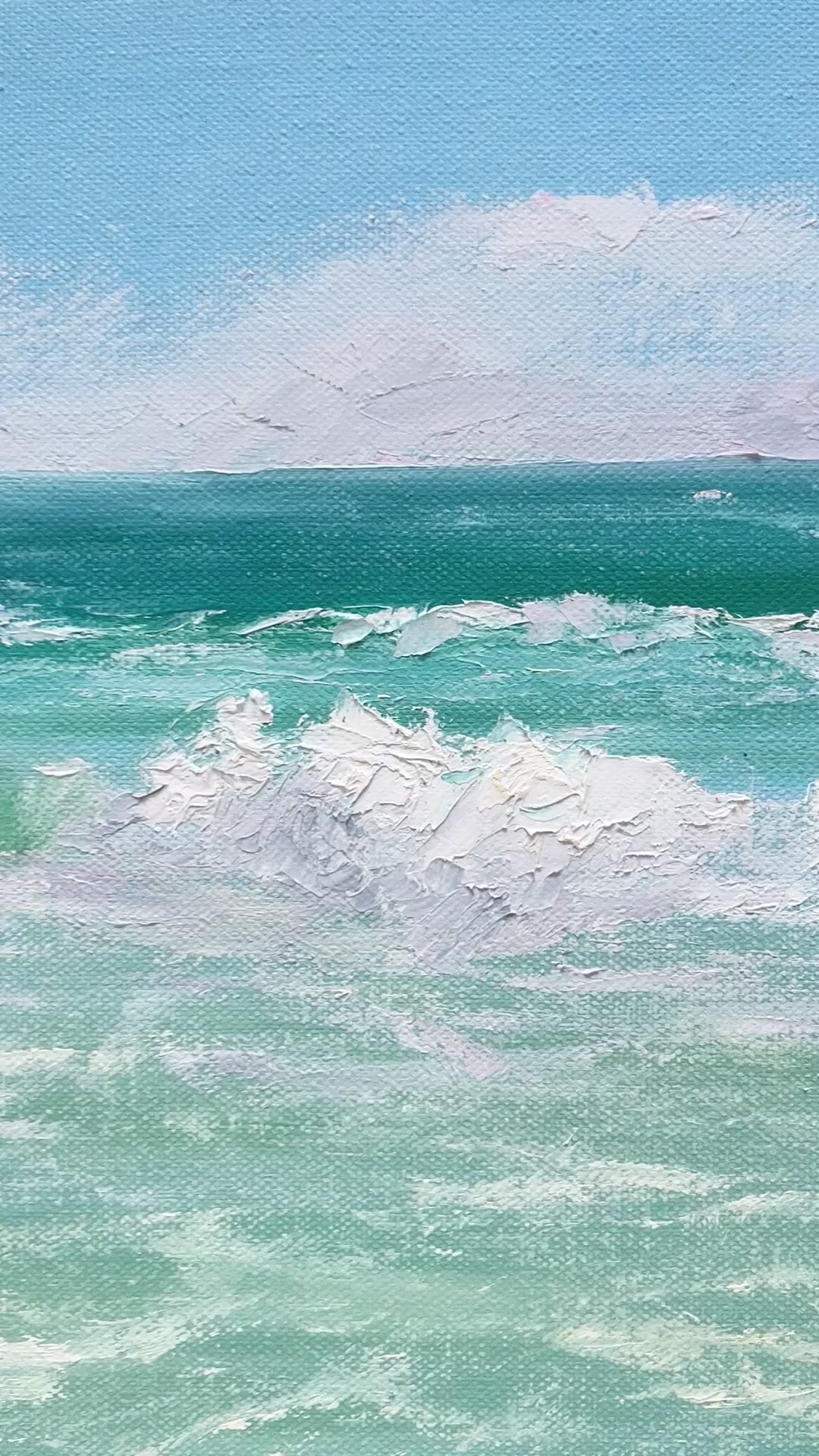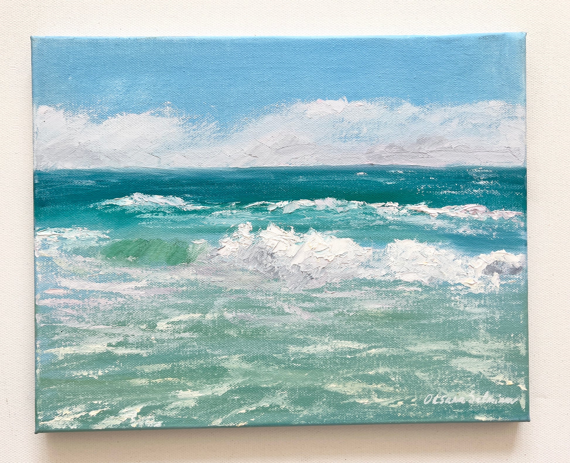 An original oil painting on canvas, this romantic, abstract, and sophisticated seascape brings a touch of art to any modern interior.