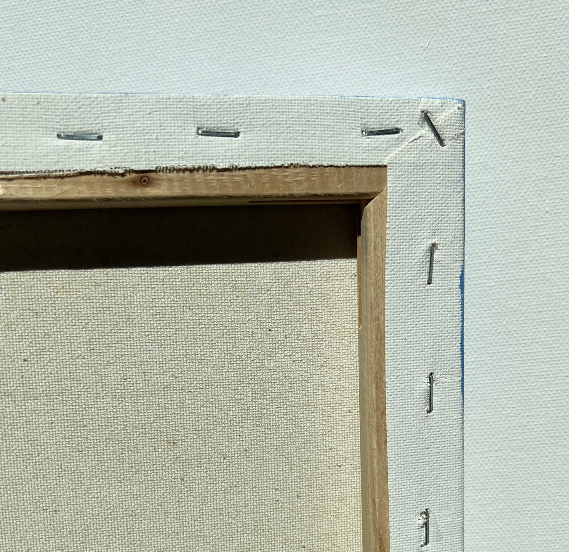Blue colors of sky and warm sunset at the lake bring beautiful vibe to any modern interior and touch of contemporary art to your home. Romantic and warm painting.