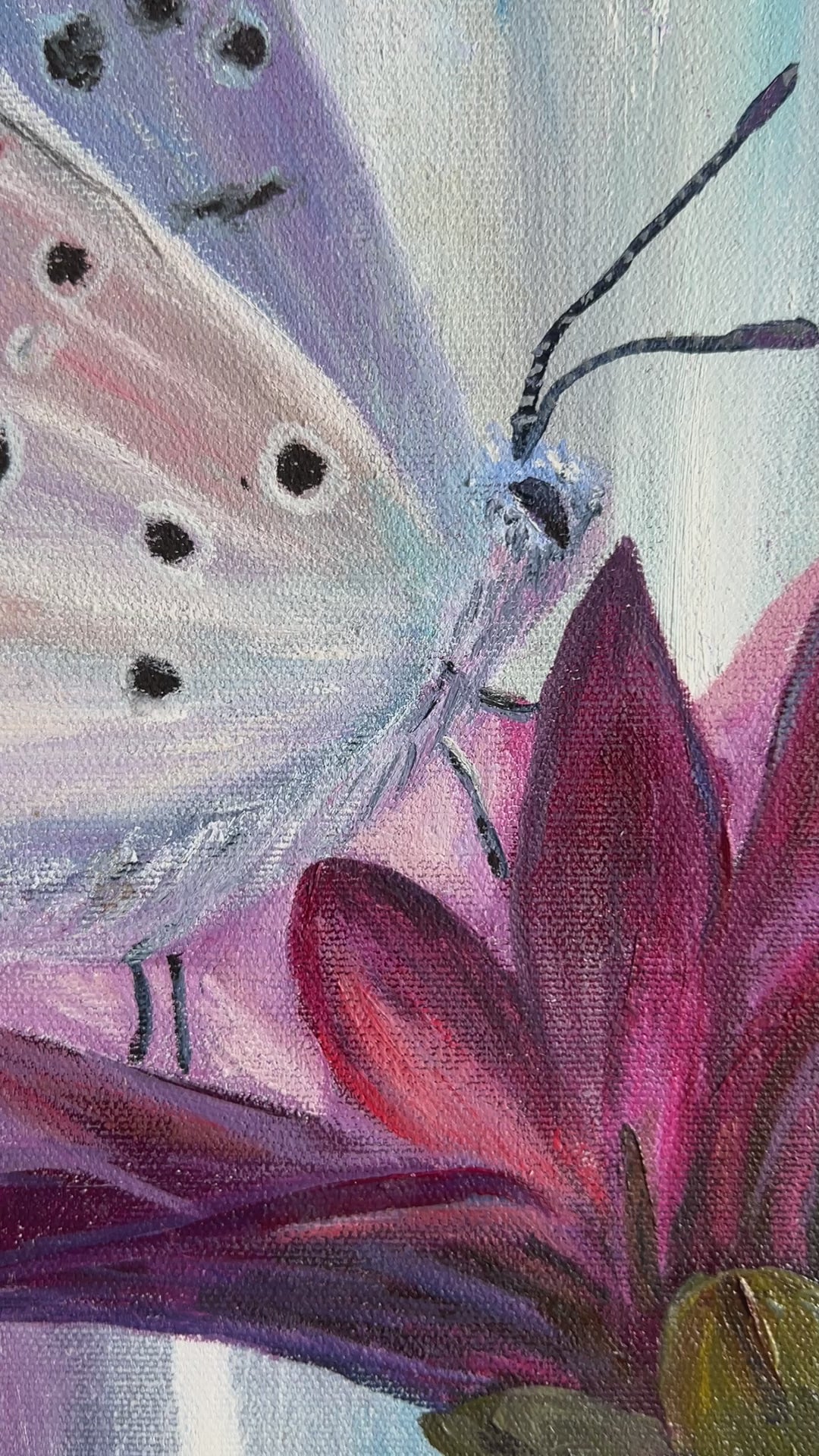 Original oil impasto abstract painting "Fragile Butterfly" сelebrates the luxurious and fragile beauty of butterfly and flower.