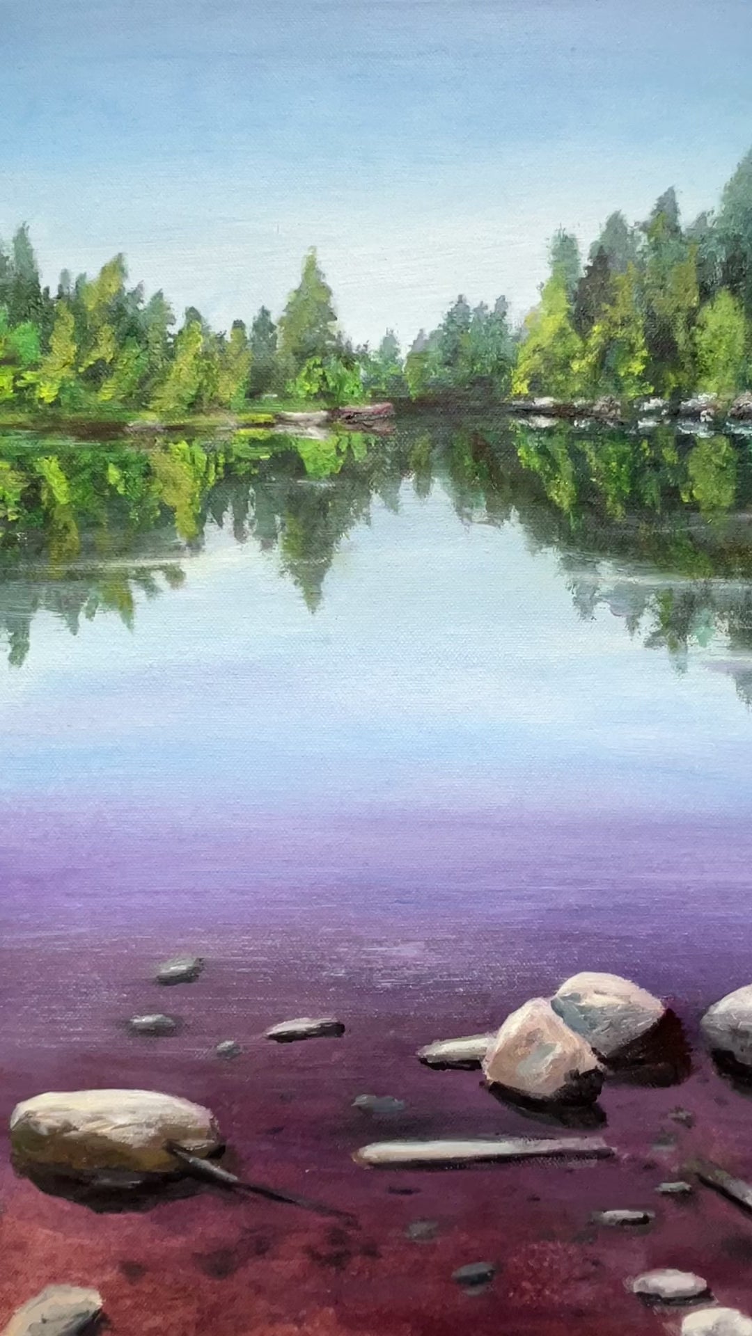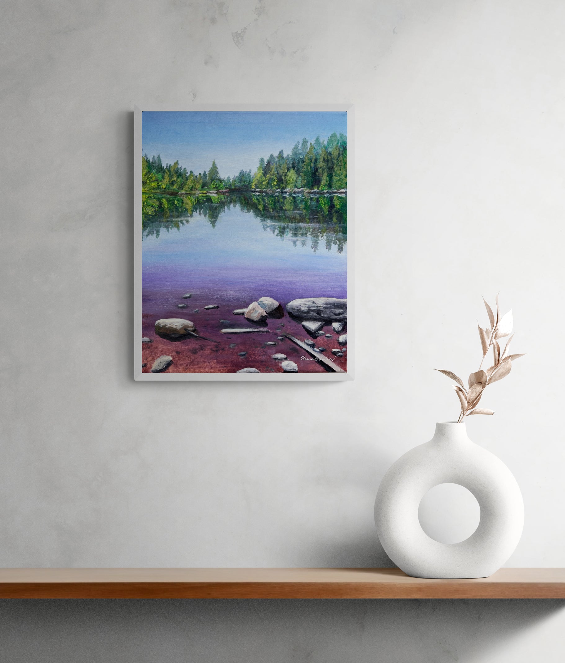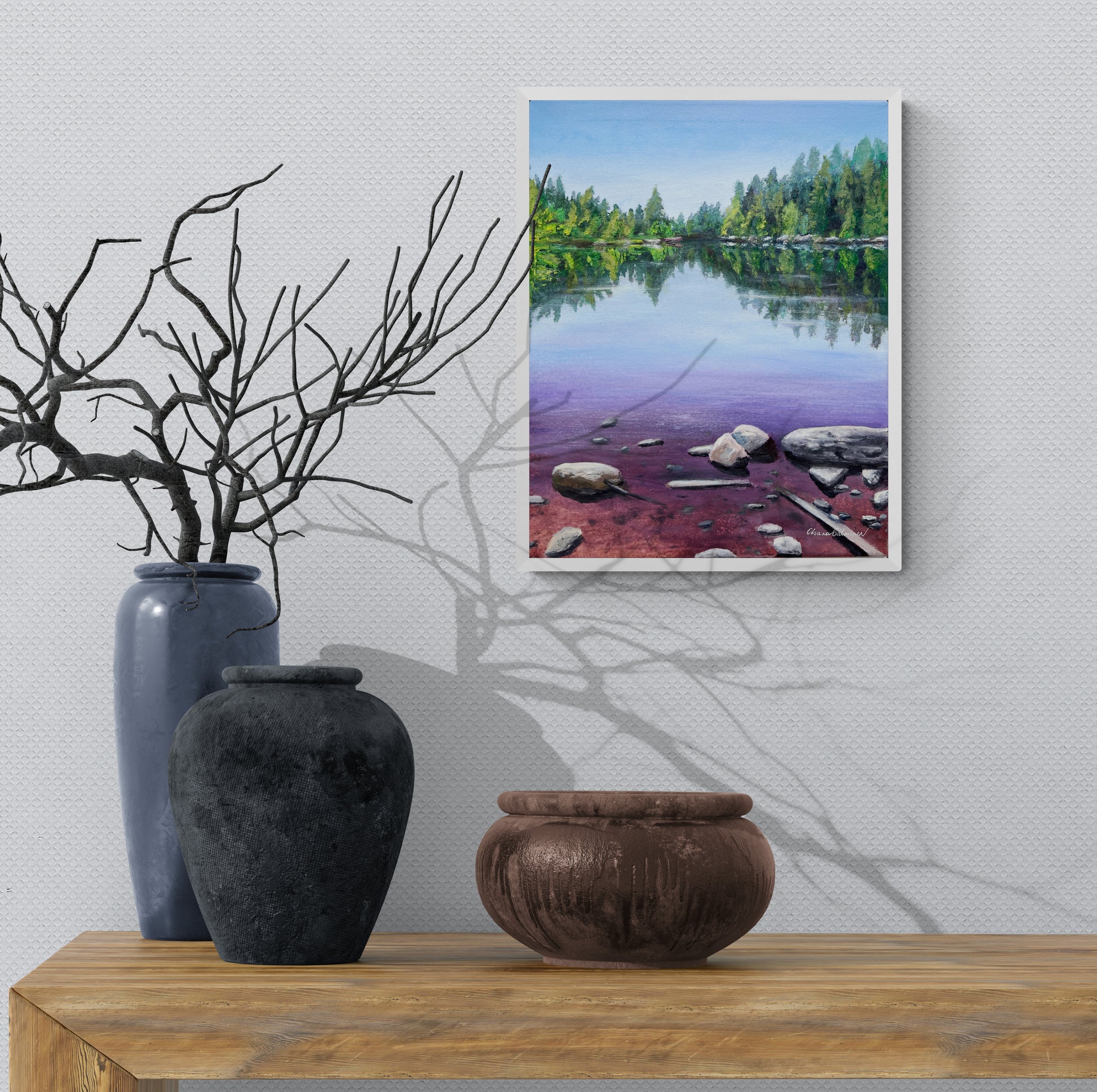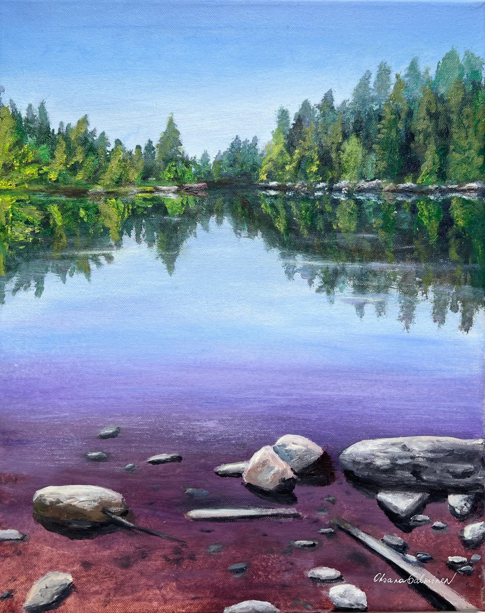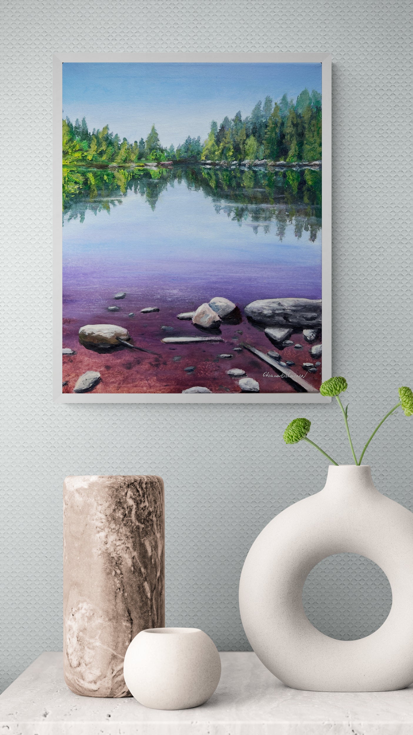 Original oil painting on cotton stretched canvas, the landscape brings the fresh breeze of Finnish summer.