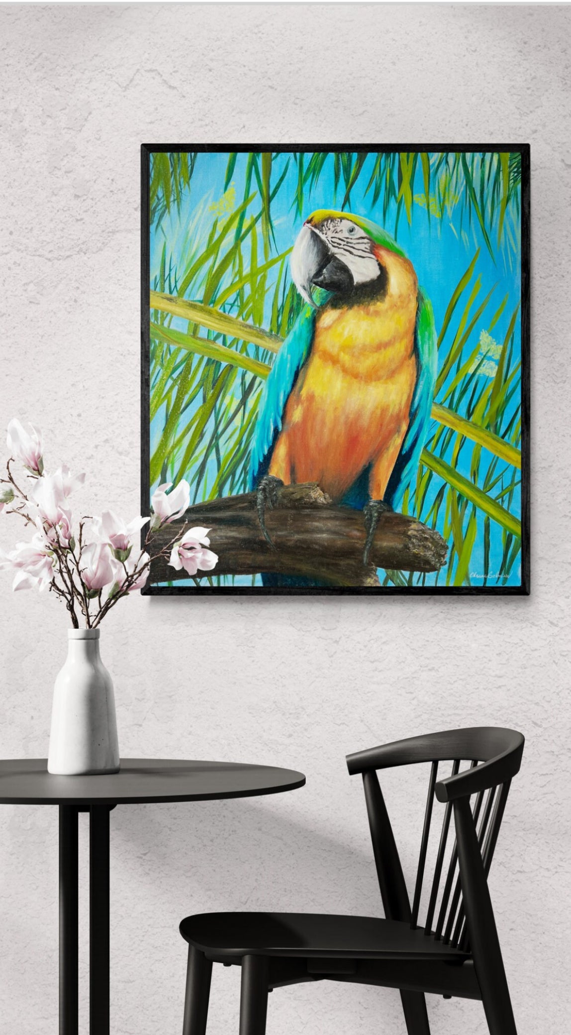 The bright and sophisticated colors of the painting bring a beautiful vibe to any modern interior and a touch of contemporary art to your home. It is a romantic and vibrant painting.