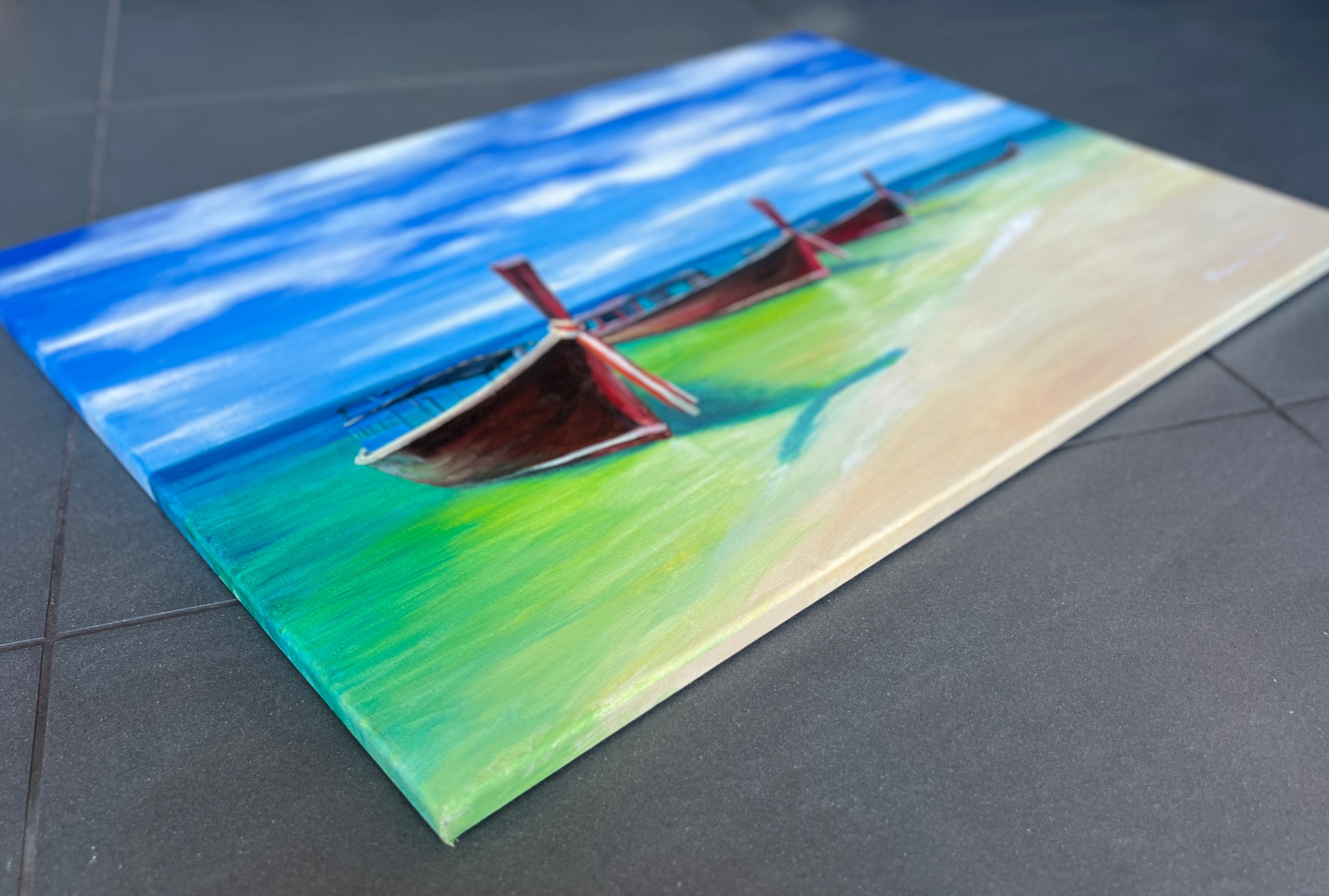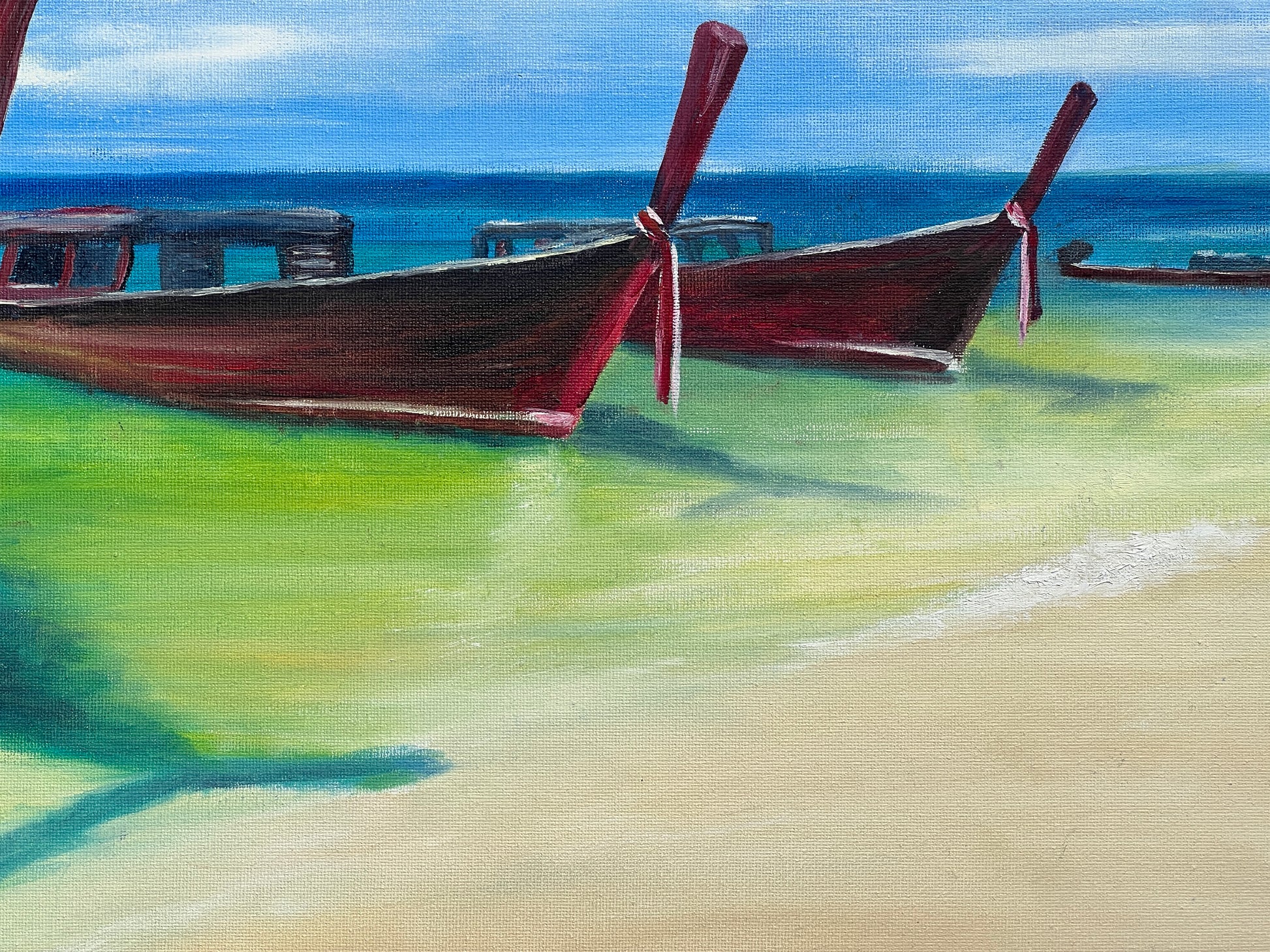 Original oil romantic tropical beach painting, the luxurious and sophisticated abstract seascape.