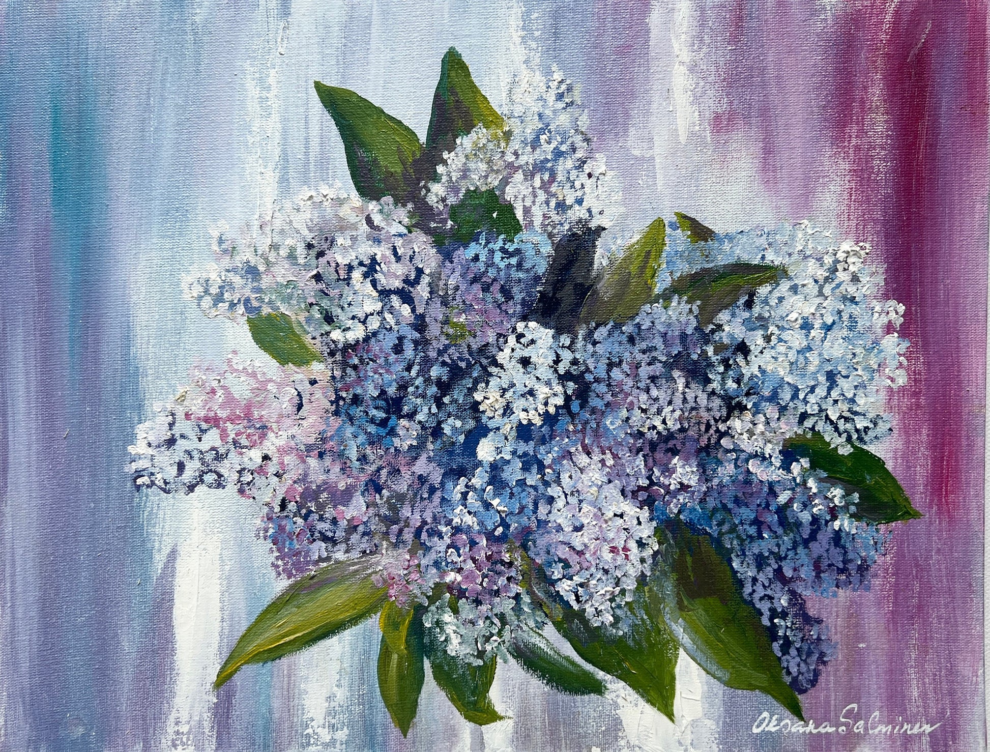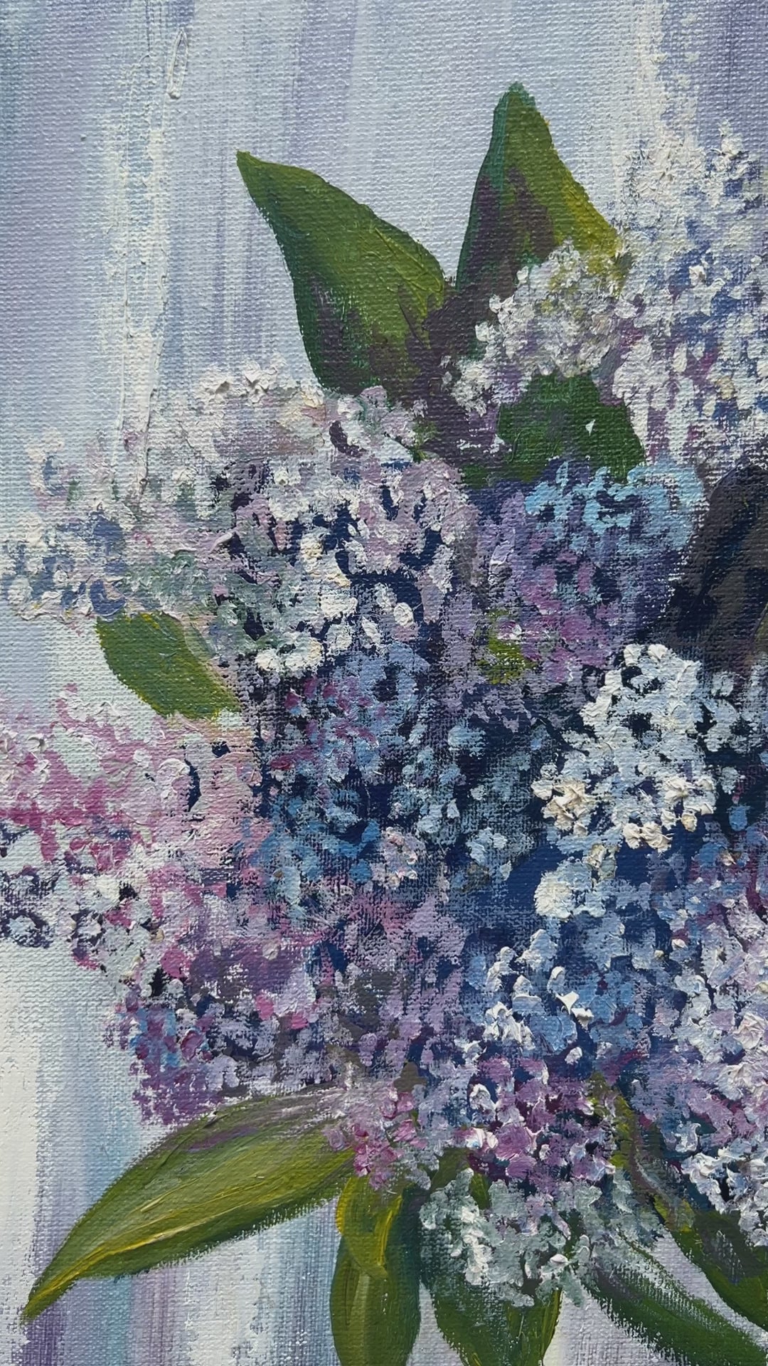 Original oil impasto painting "White and Violet Lilacs" сelebrates the luxurious and sophisticated beauty of lilac flowers.