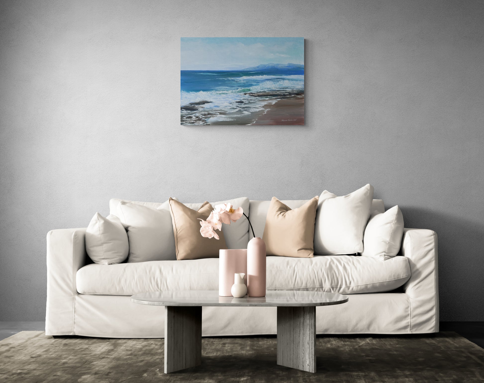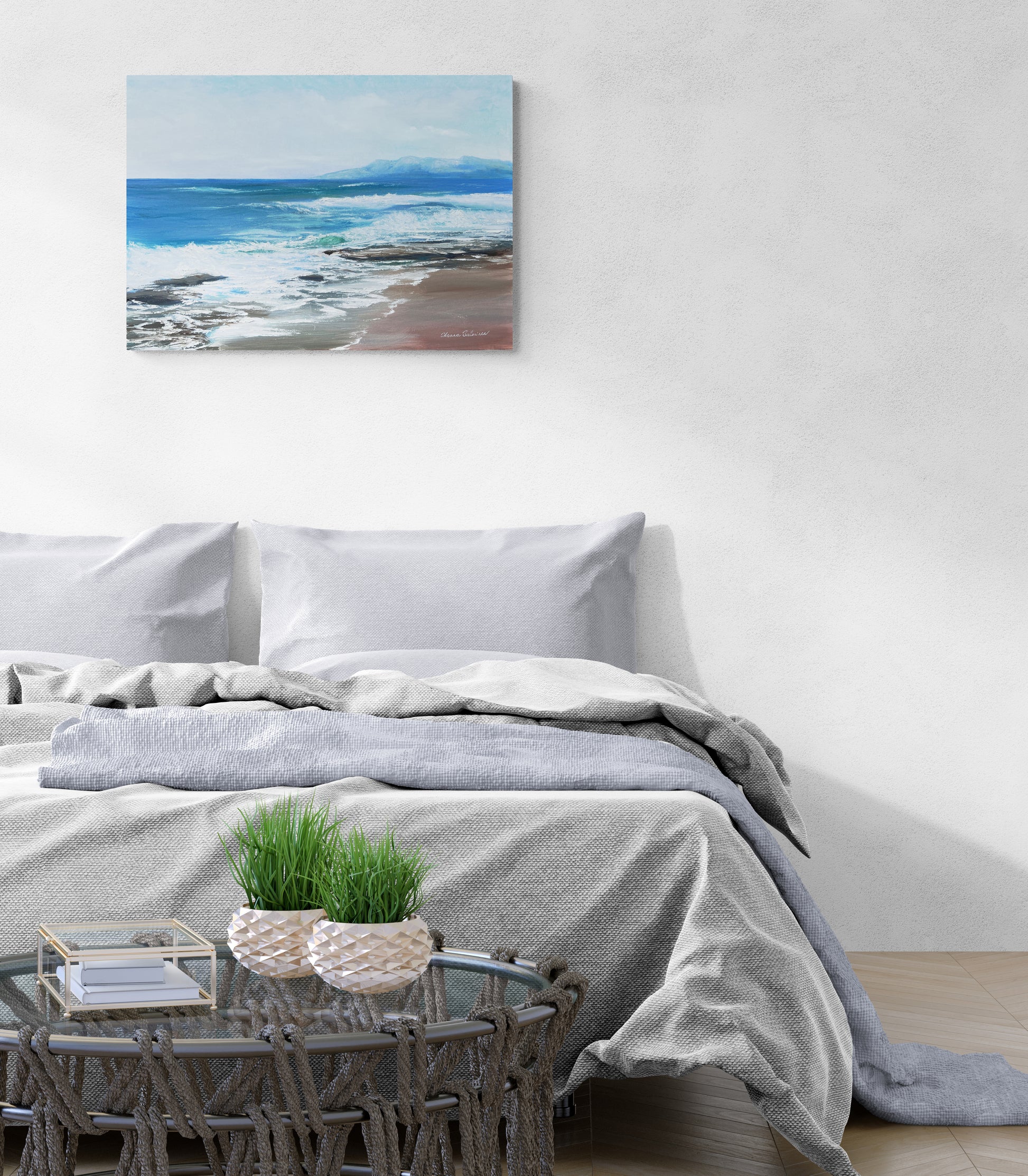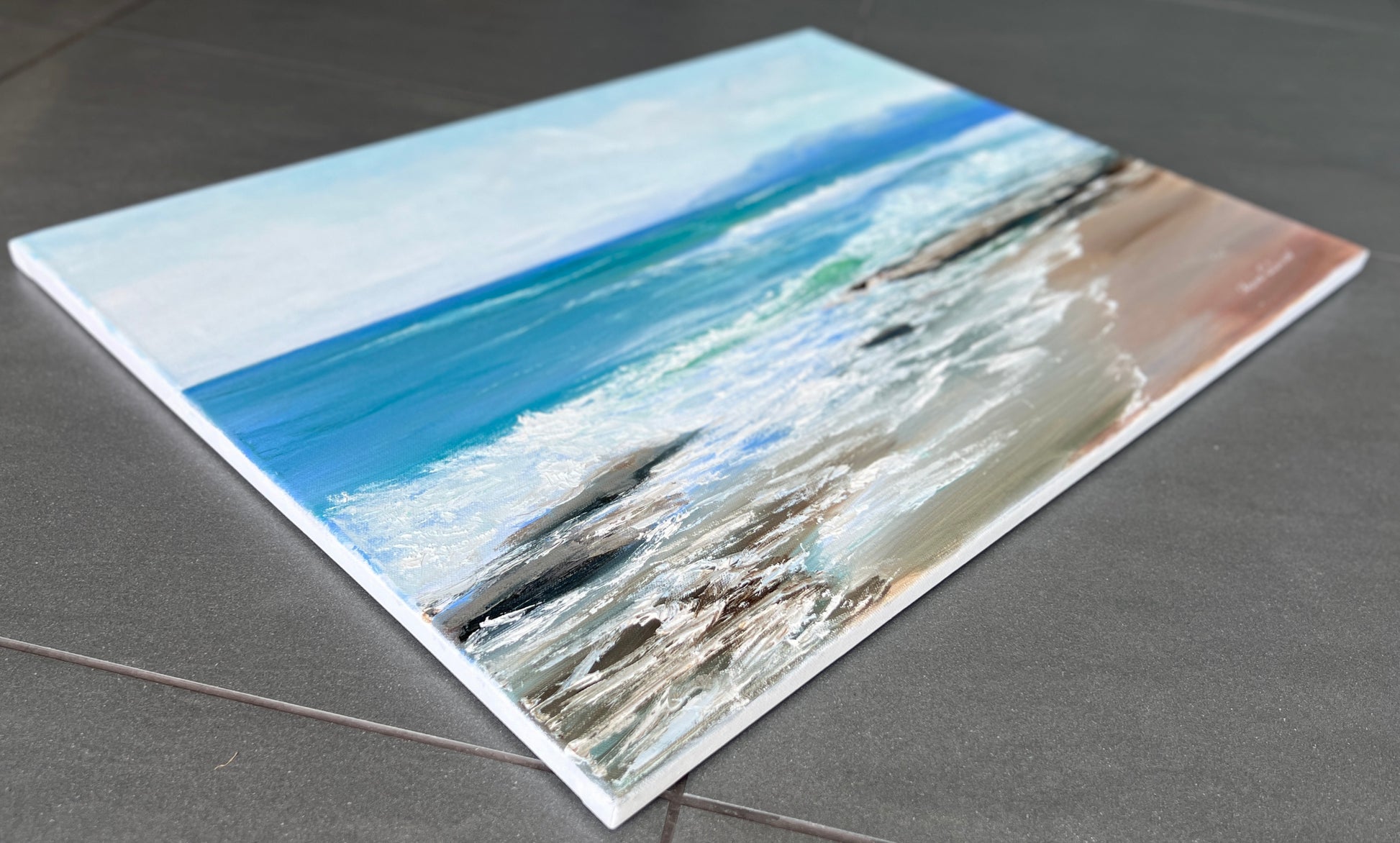 In this oil painting, I sought to capture the raw, untamed energy of the sea. The realistic style helps convey the turbulent waves and the horizon beyond, illustrating the duality of nature's temper and tranquility. Employing textured brush strokes and a harmonious palette, I aimed to evoke a sense of peace amidst the storm, a reminder of resilience in the face of life's tumultuous waves. This artwork is intended to bring a dynamic yet soothing presence to any space.
