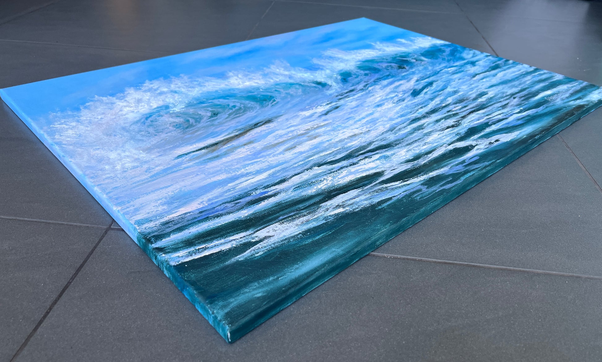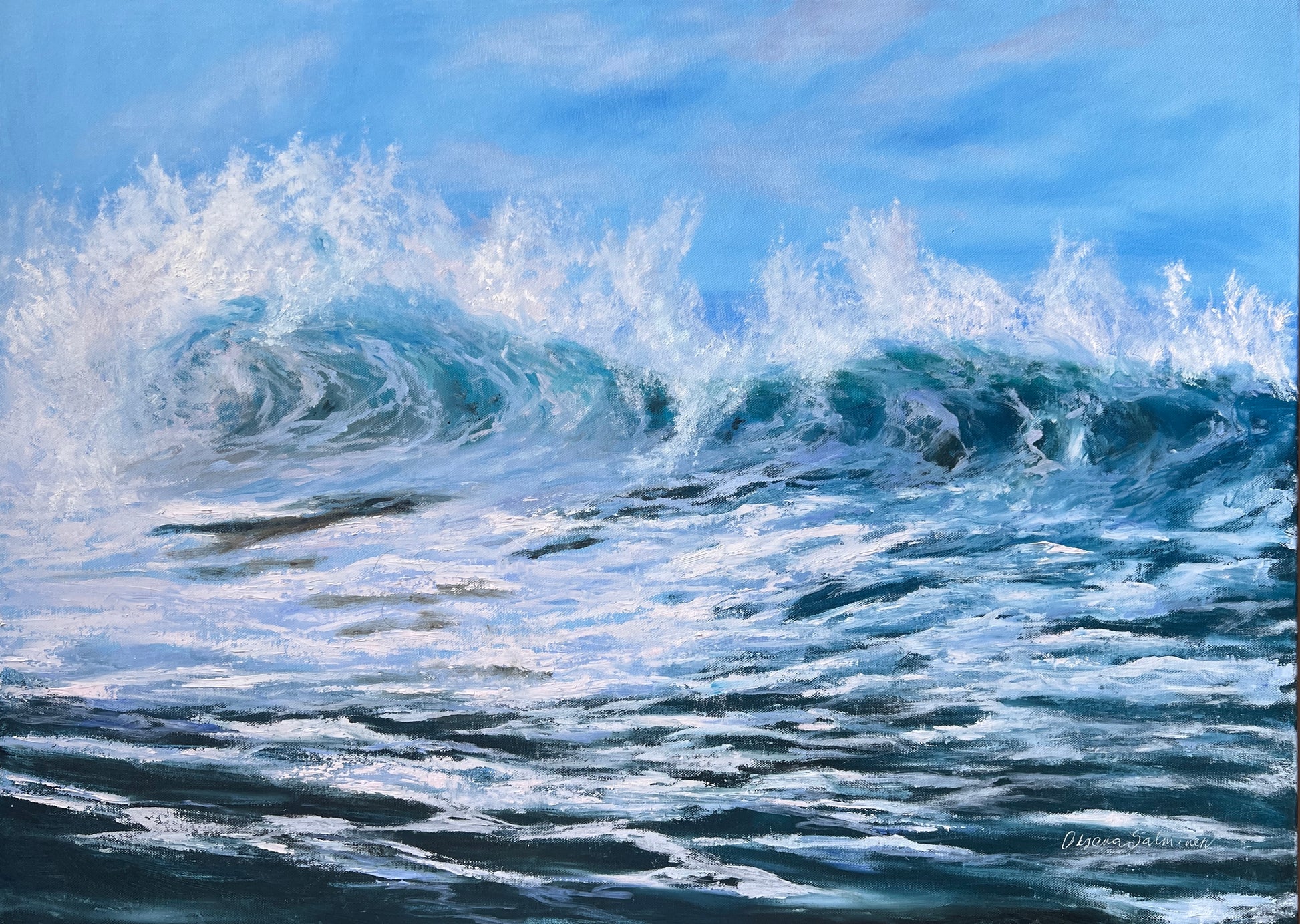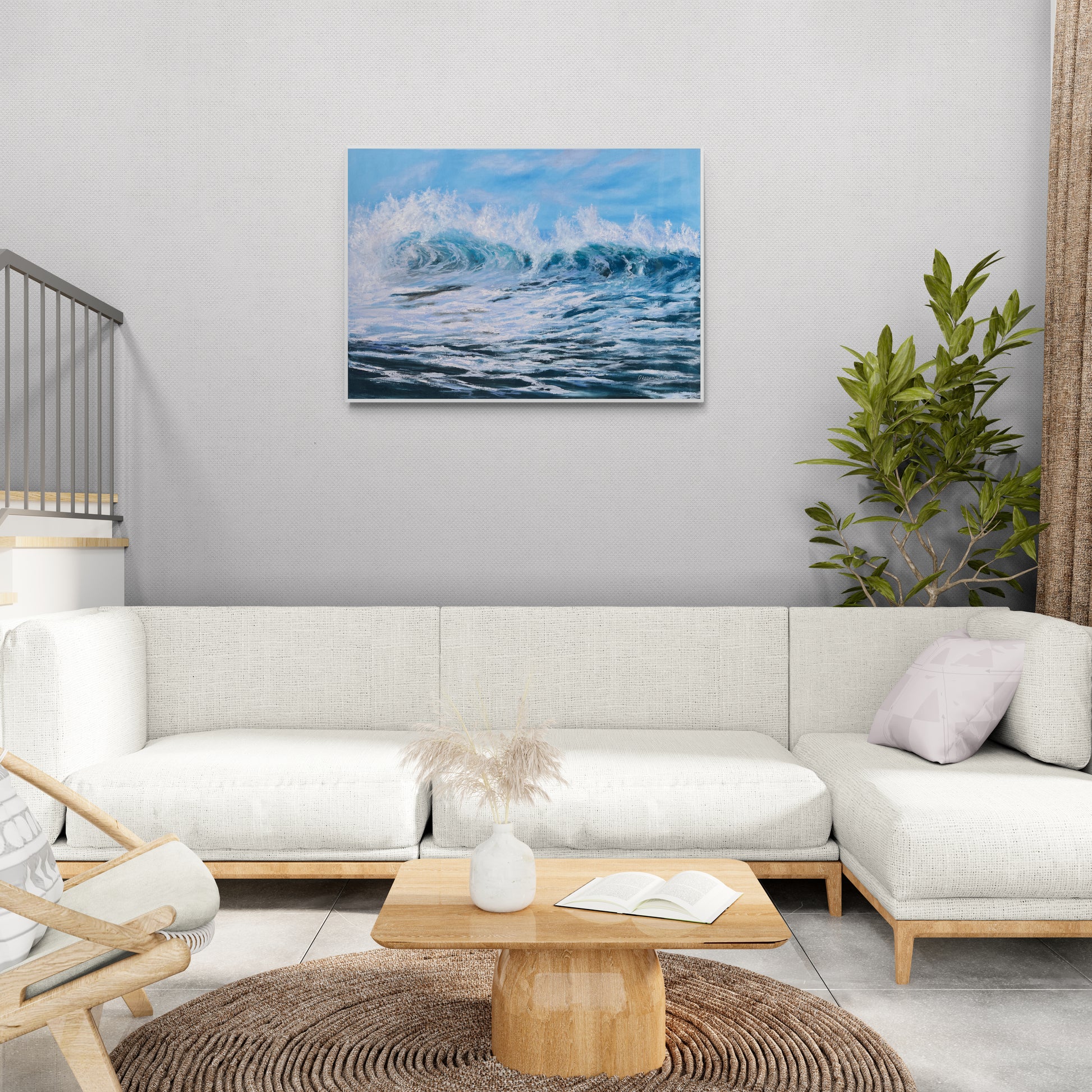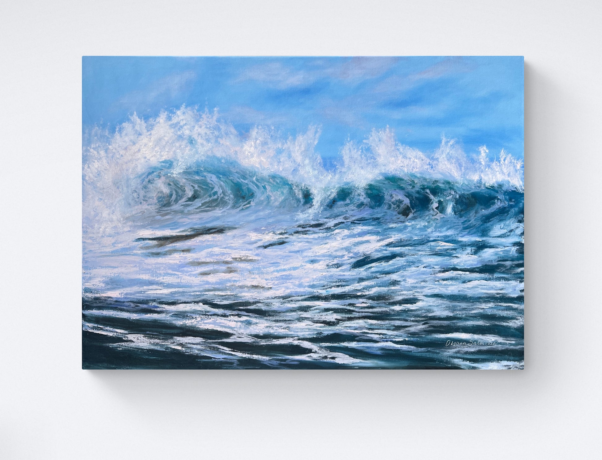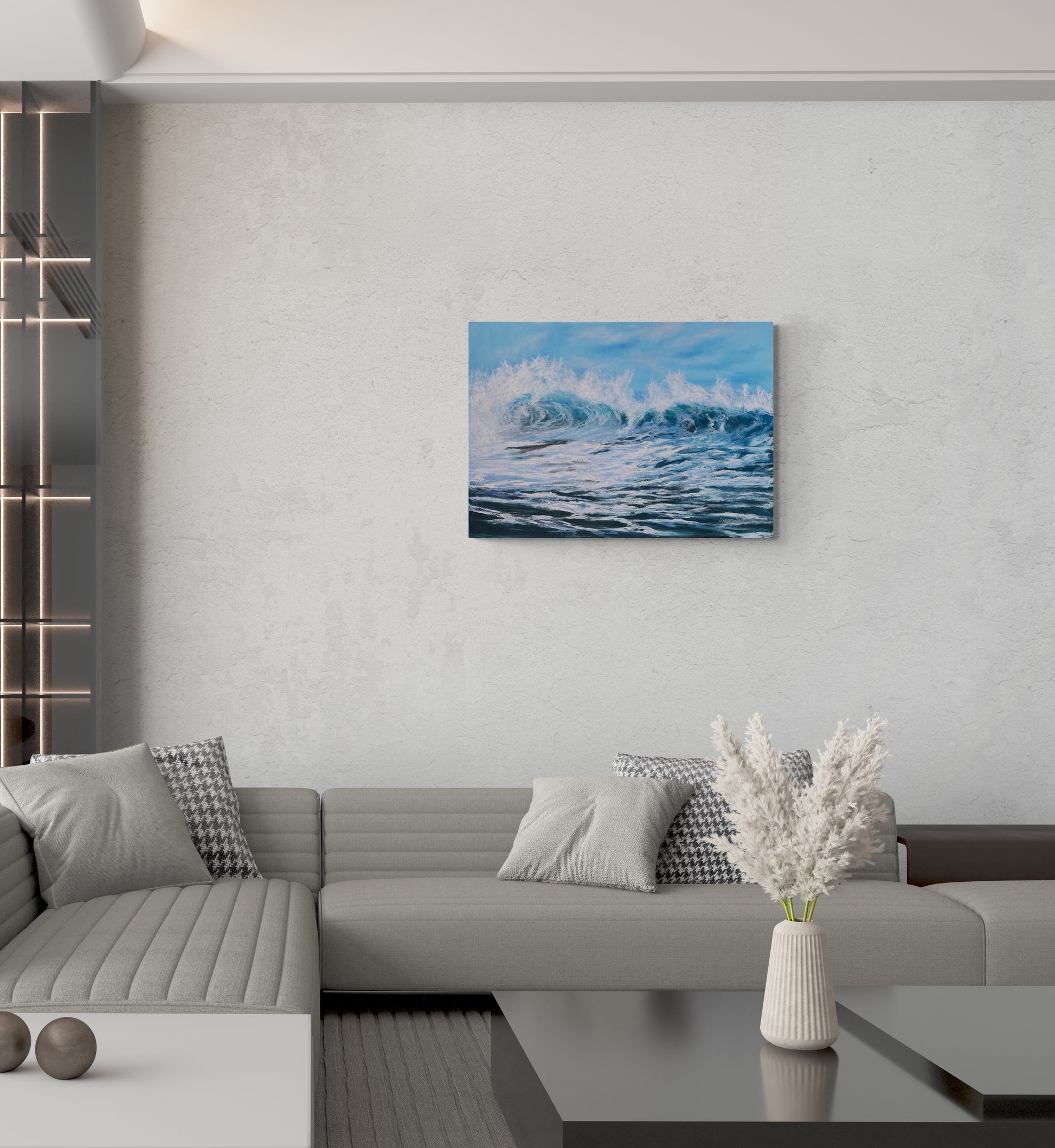 In this oil painting, I've captured the tumultuous essence of oceanic waves. Blending abstract, impressionistic, and realistic techniques, I evoke the raw, unbridled energy of the sea. Each brushstroke reflects the power and motion of the water, wrapping the viewer in a dance of shadows and light. This piece seeks to embody the beauty and the overwhelming might of nature, offering a captivating and dynamic energy to any space it inhabits.